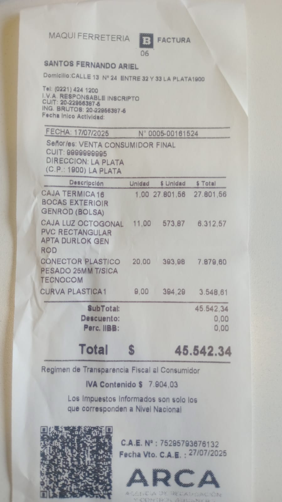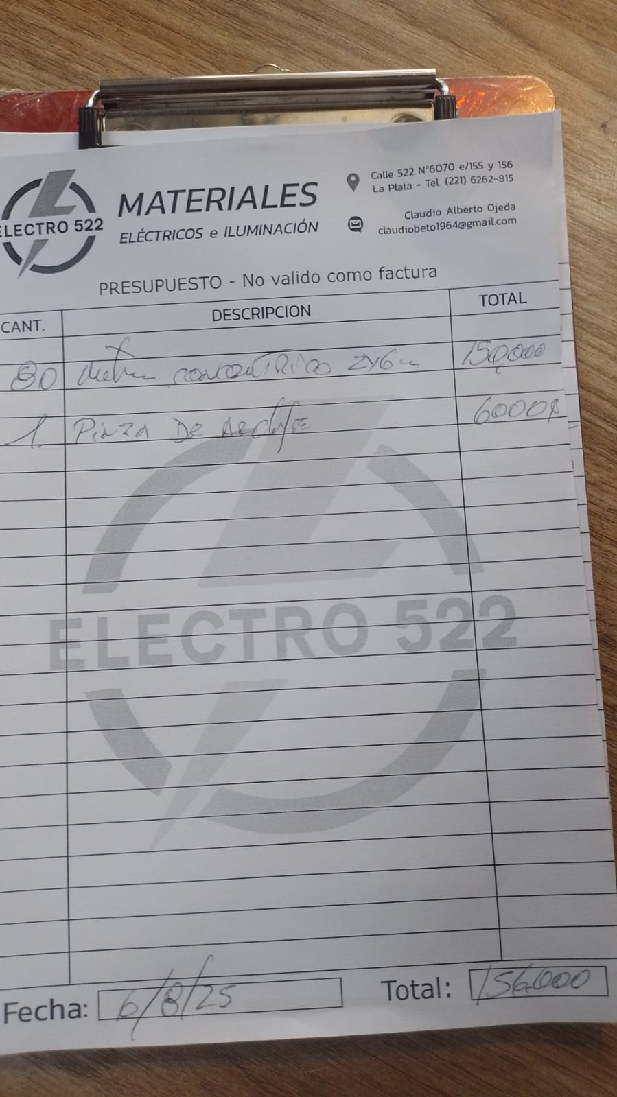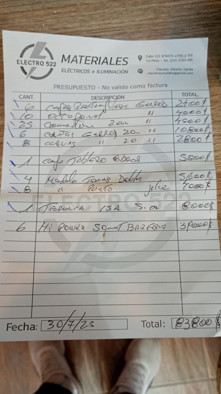 cañerias y cosas electricas para el predio, para el armado de la sala para actividades