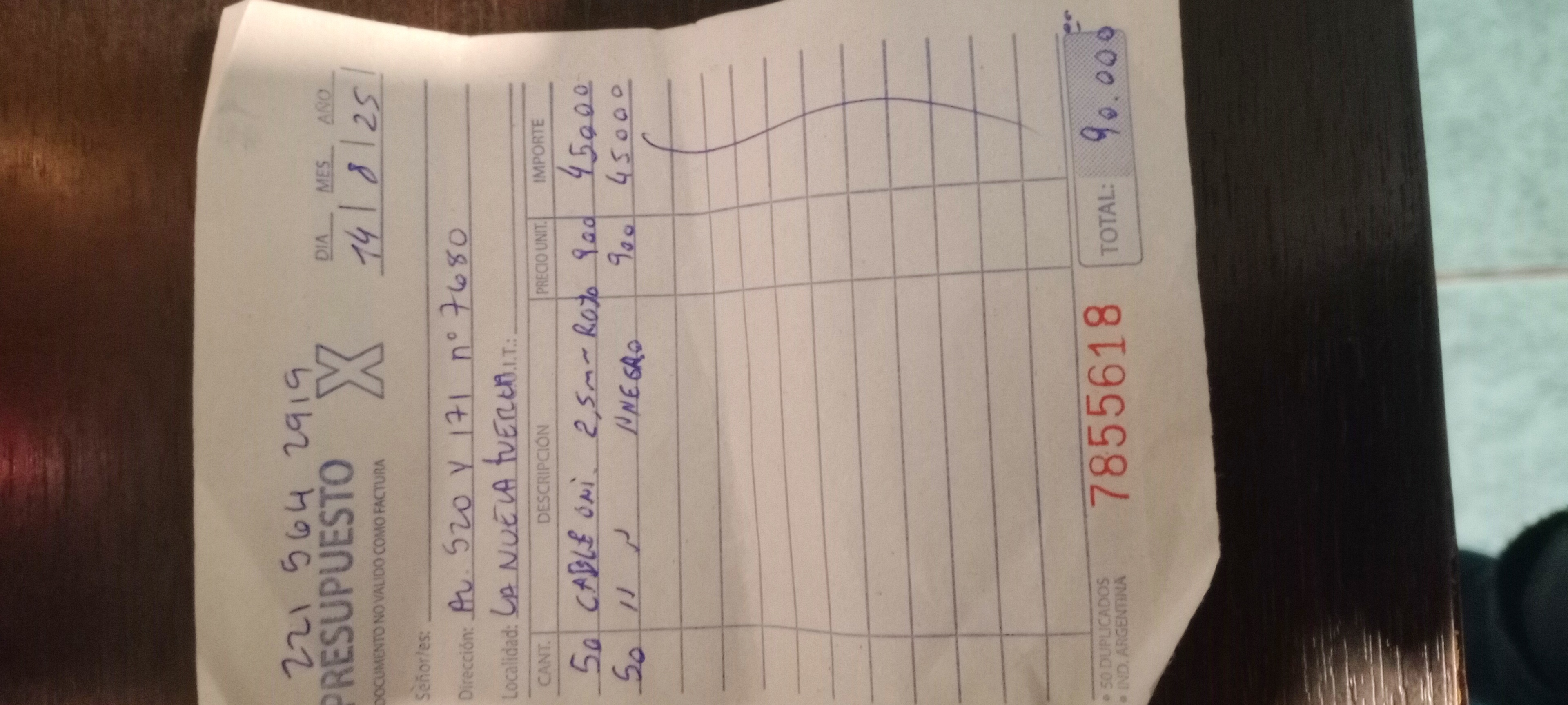 cable subterraneo para cableado de postes de el lado de enfrente del predio